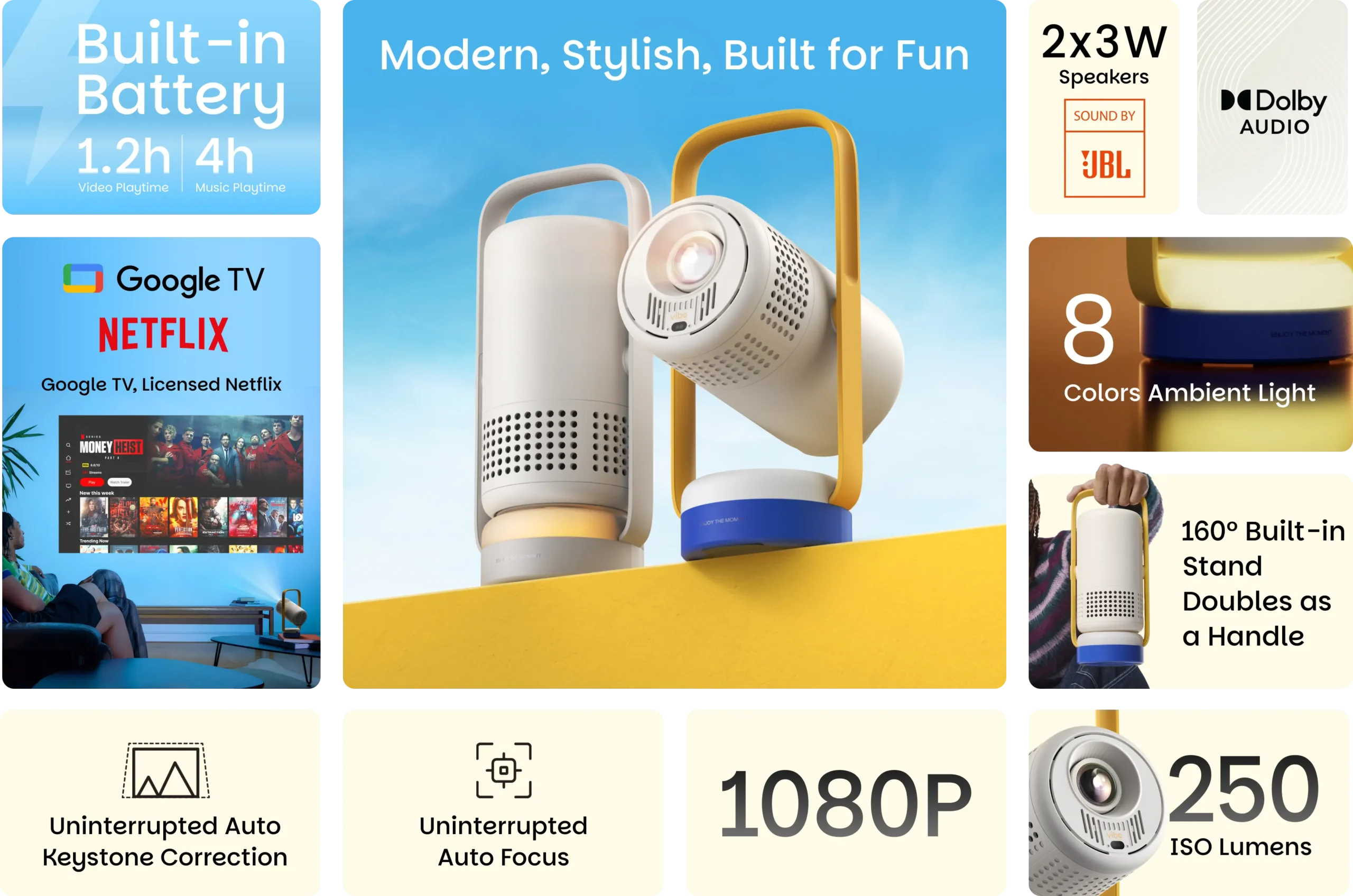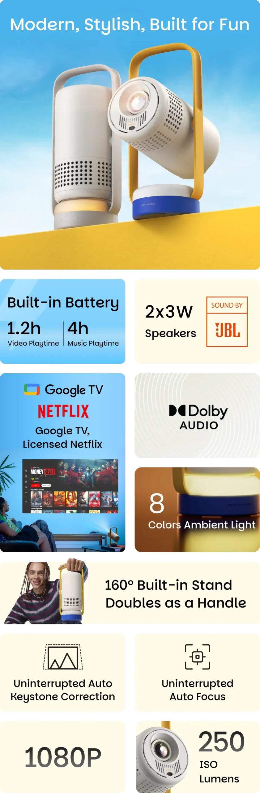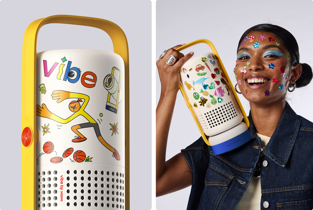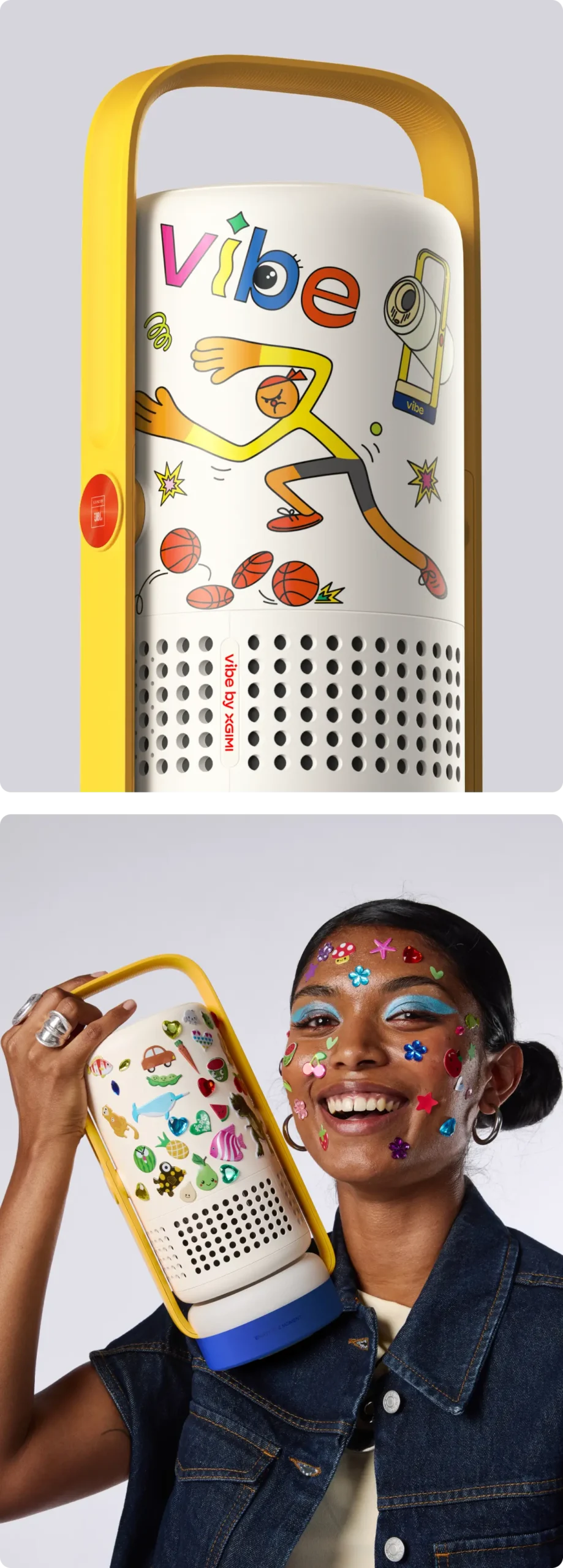 Minden Vibe One (elemmel működő) készülékhez különféle szórakoztató matricák tartoznak, így a projektort a saját stílusodhoz igazíthatod.